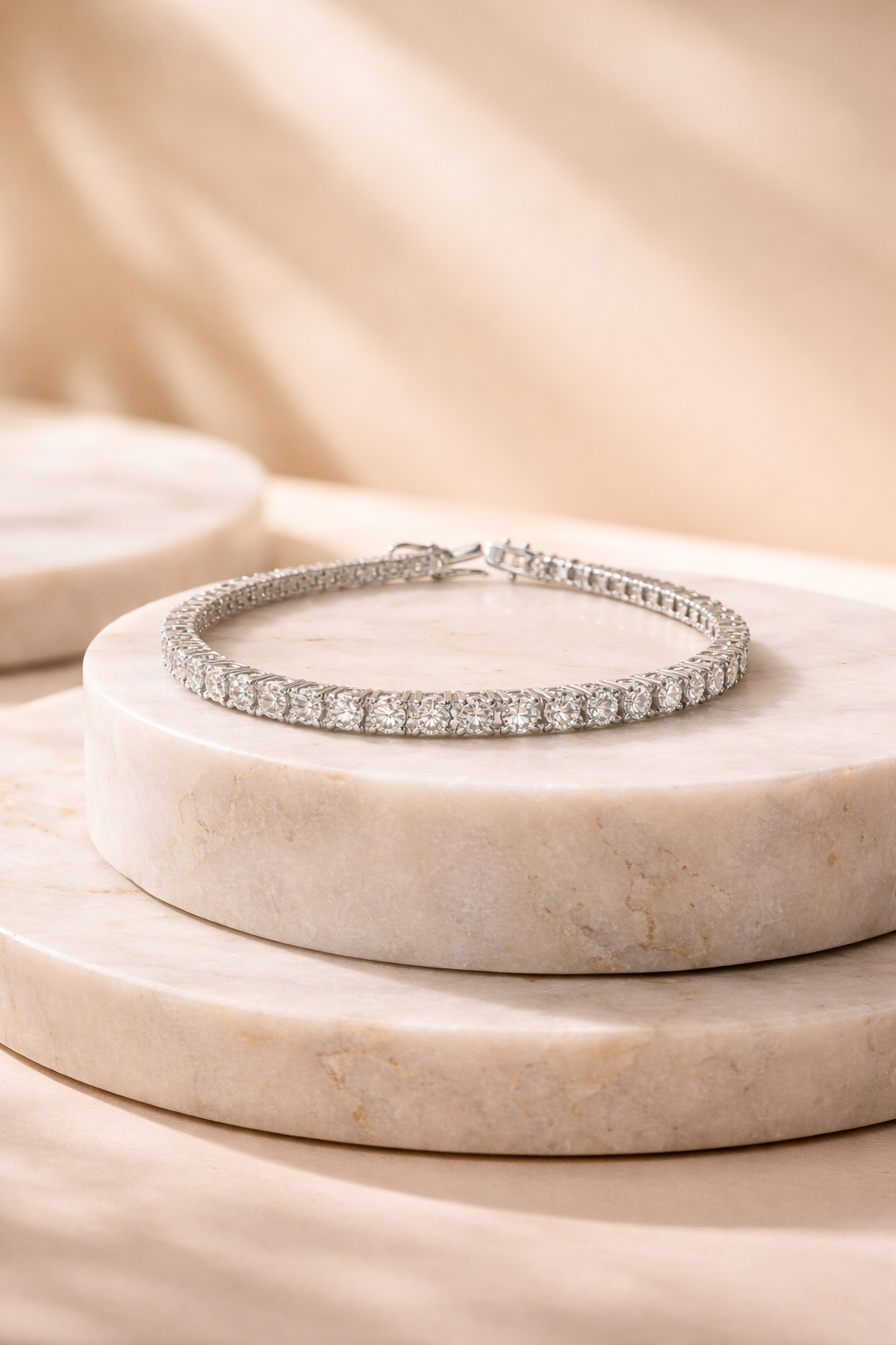 More than an accessory, The Lumière Tennis Bracelet is a reminder that simplicity can shine just as brightly. A piece made to live with you, effortlessly.