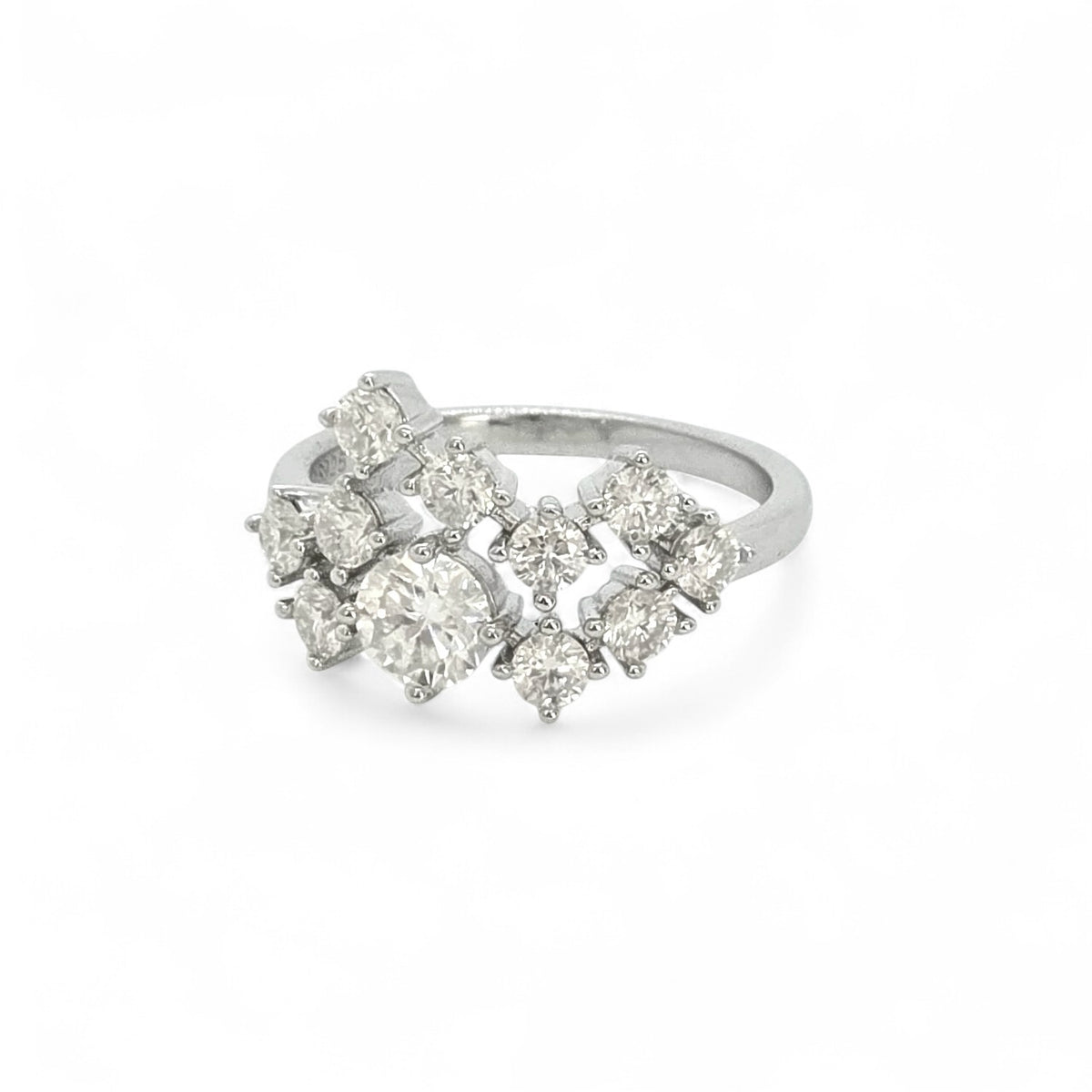 Façonnée à la main en argent 925, la bague Constellation brille d’un éclat maîtrisé, sertie de 11 moissanites D VVS1 disposées comme une constellation — un design à la fois moderne et intemporel, lumineux et unique.