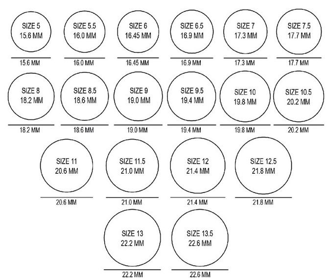 1. Nous recommandons toujours à nos clients de faire mesurer leur taille de manière professionnelle chez un bijoutier local, lorsque cela est possible, car c’est la méthode la plus fiable. Assurez-vous d’obtenir une taille précise, en précisant bien l’échelle utilisée, car les tailles européennes, américaines (US) et britanniques (UK) sont différentes.