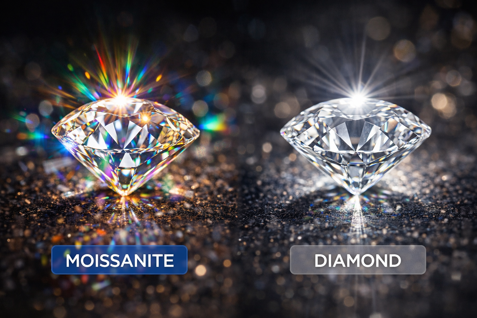 Diamonds, by contrast, offer a slightly softer, whiter brilliance with fewer color reflections. Neither is better than the other. The difference is purely aesthetic and comes down to personal taste. Some clients are drawn to the vibrant fire of moissanite, while others prefer the more classic sparkle of diamond.