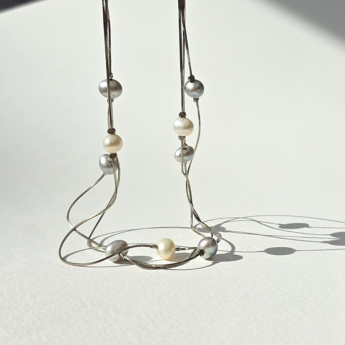Ariel - Layered Pearl Silver Necklace